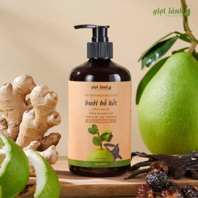 Dầu gội bồ kết - bưởi, dầu gội thảo dược thuần chay hỗ trợ kích mọc tóc Giọt Lành 500ml