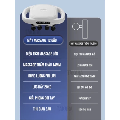 Máy massage cầm tay, máy mát xa 12 đầu Takara YM-60 massage toàn thân giúp giảm nhức mỏi cơ