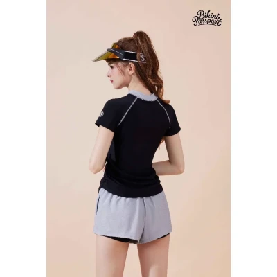 Áo bơi lẻ Nữ BIKINI PASSPORT kiểu Áo bơi tay ngắn may 4 kim - Đen Trắng - BS1041_BL