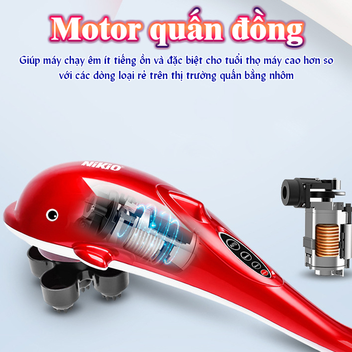 Với chất liệu quấn động cơ bằng đồng giúp máy chạy êm ít tiếng ồn và đặc biệt cho tuổi thọ máy cao hơn so với các dòng loại rẻ trên thị trường quấn bằng nhôm. Ngoài ra với dòng NK-608B này có tính năng chống rung ở dưới phần tay cầm, giúp cho tay khi cầm massage ít làm tê tay. Cho bạn cảm giác thoải mái hơn bao giờ hết.