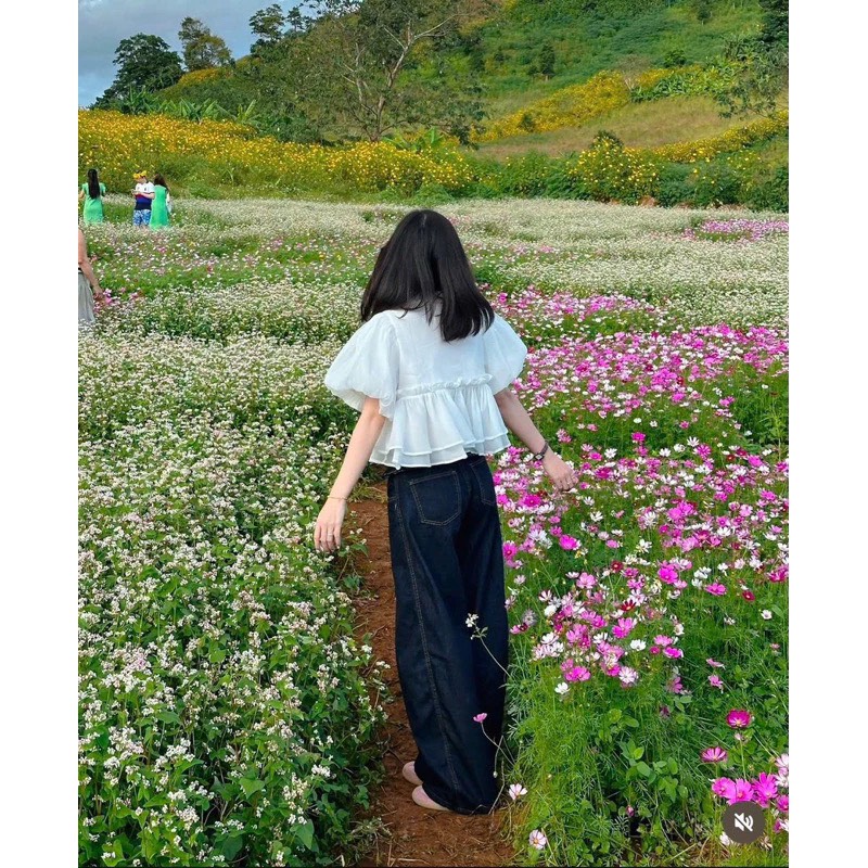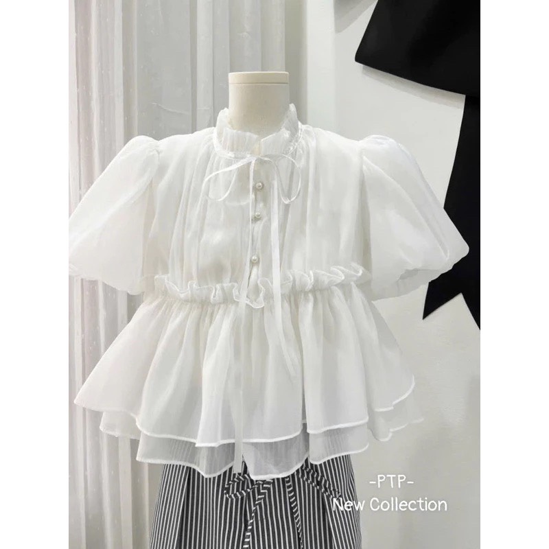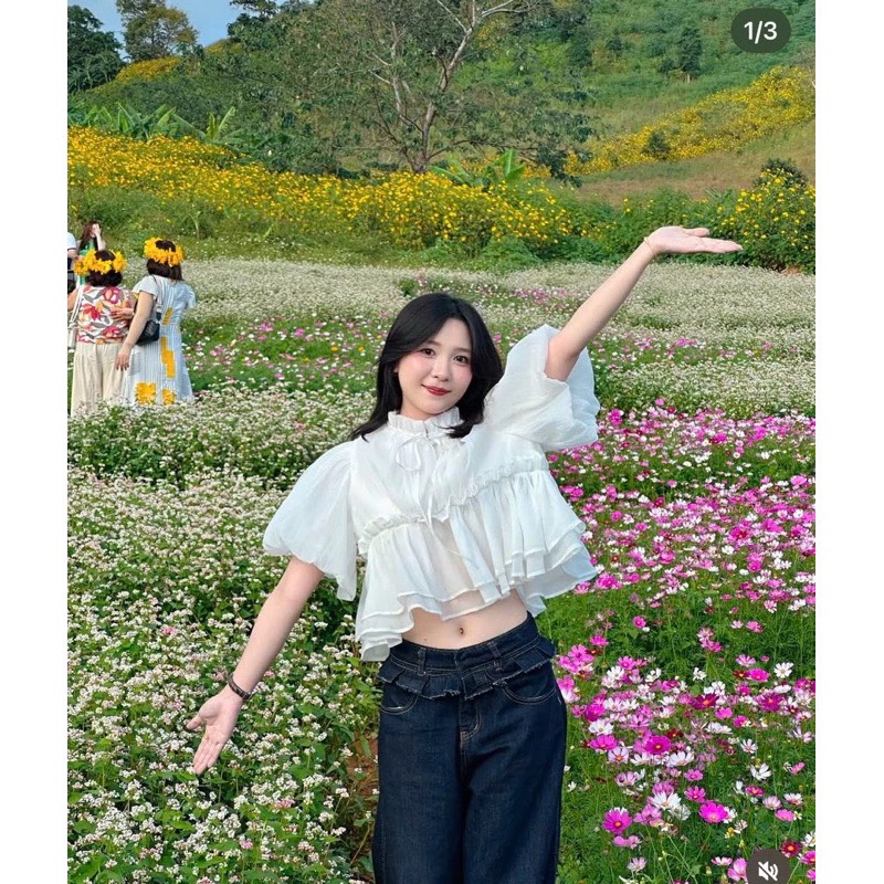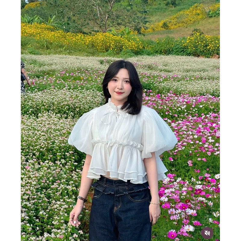 ÁO BABYDOLL DÁNG NGẮN TAY BỒNG CÚC NGỌC ĐÍNH NƠ A39