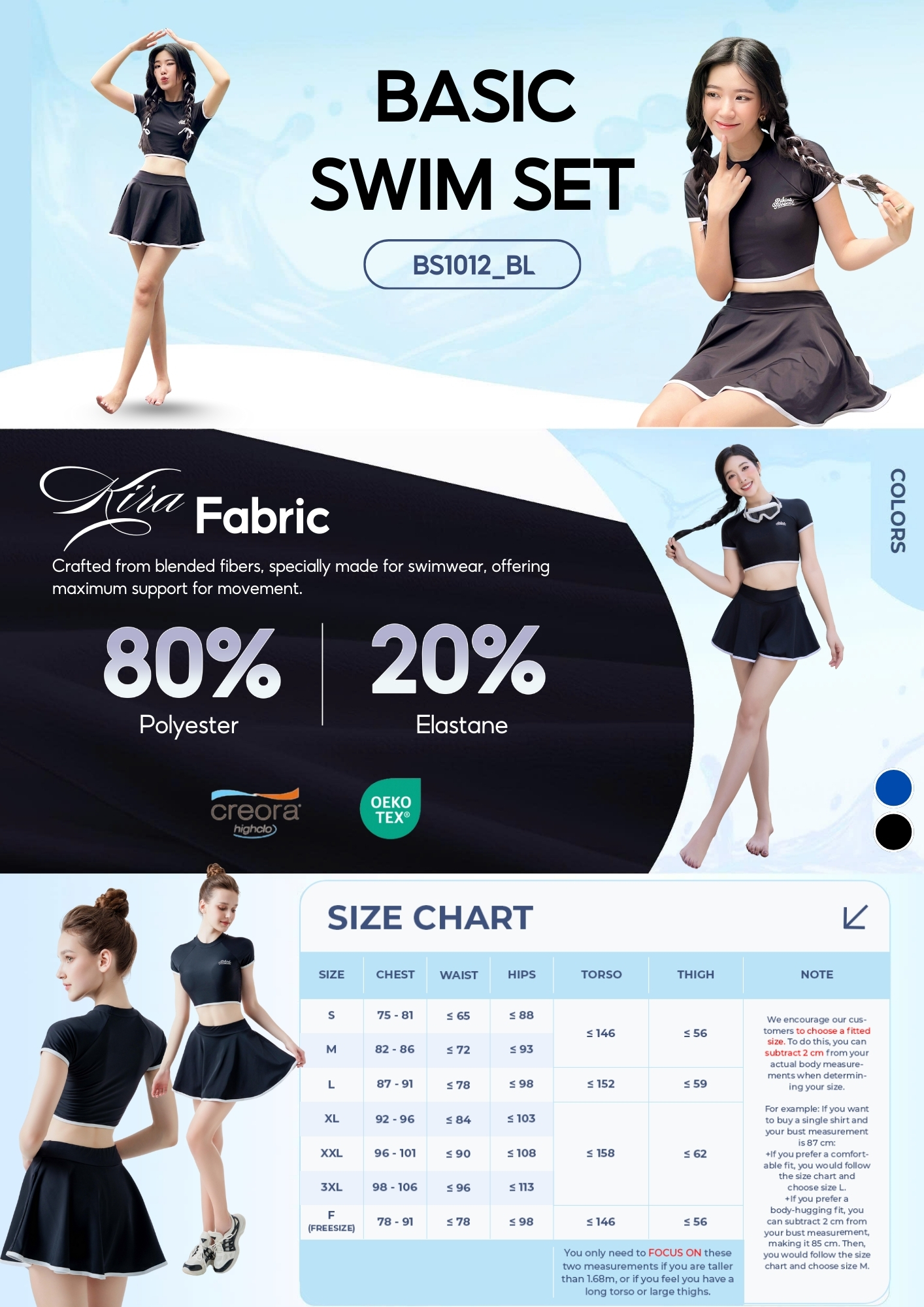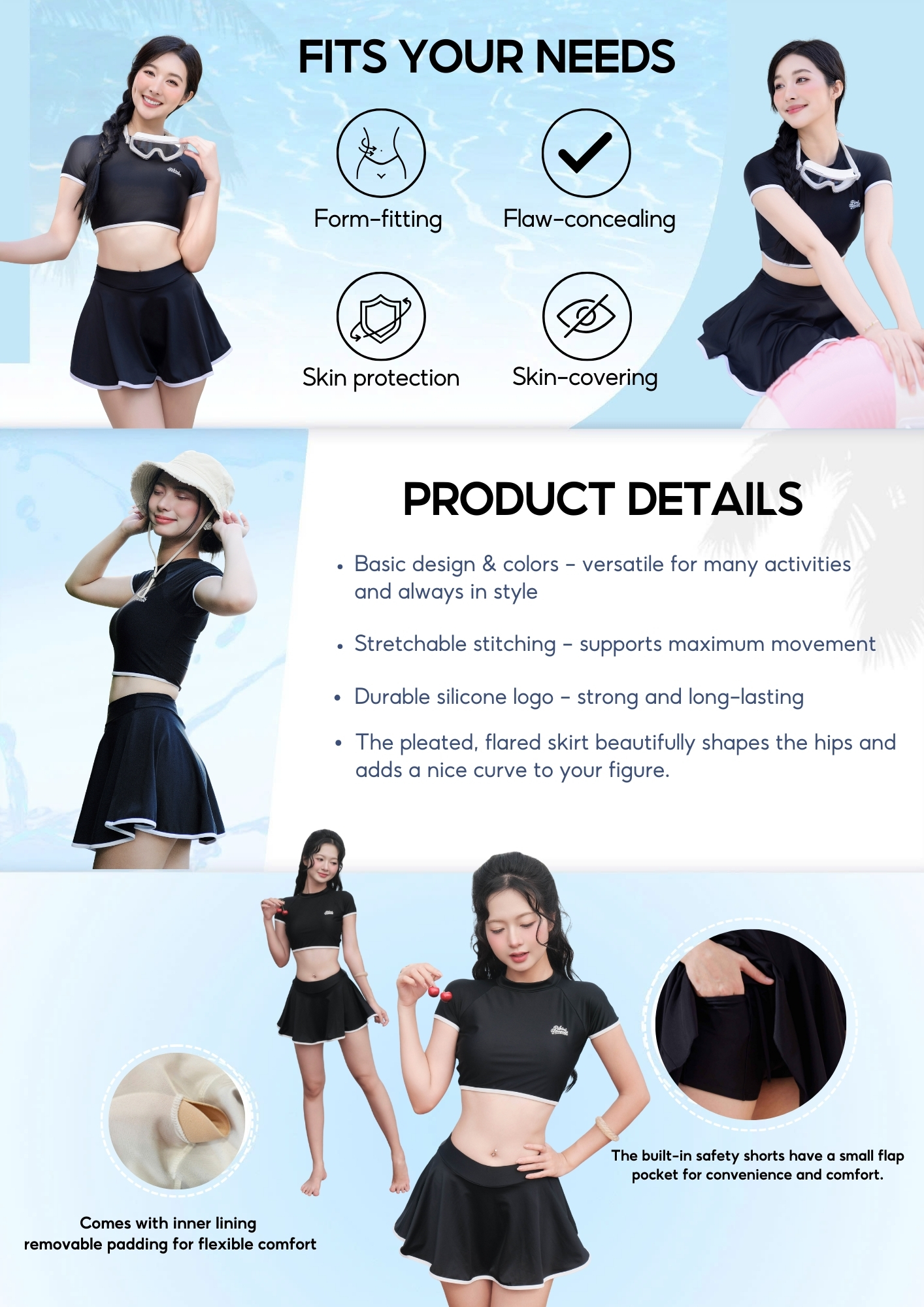 THÔNG TIN SẢN PHẨM: Đồ bơi, set đồ bơi nữ hai mảnh váy lưng cao, tay ngắn, kín đáo BIKINI PASSPORT - màu Đen - BS1012_BL