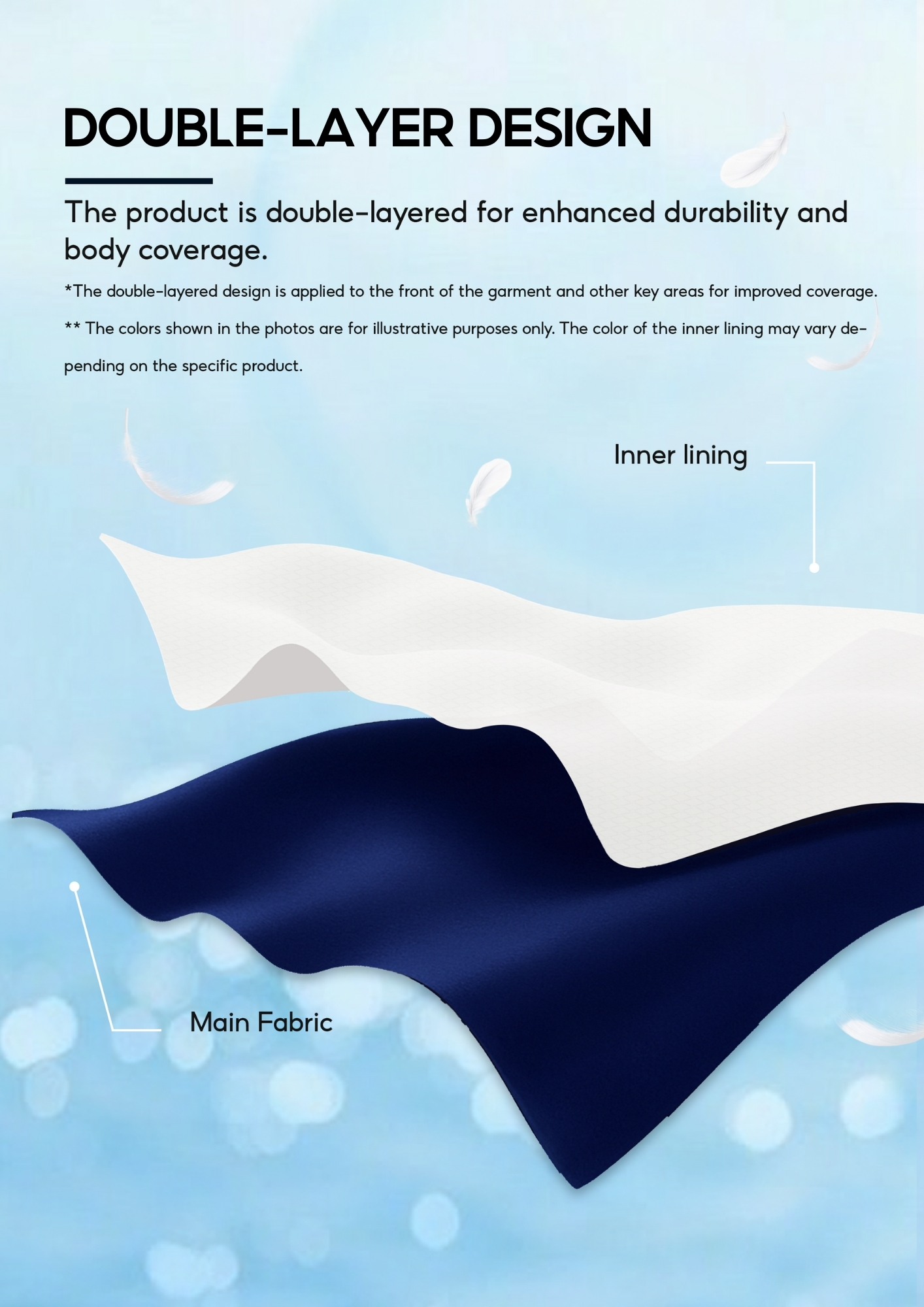 Áo bơi với thiết kế đường may tỉ mỉ, tinh tế, có lớp vải lót bên trong tiện lợi.