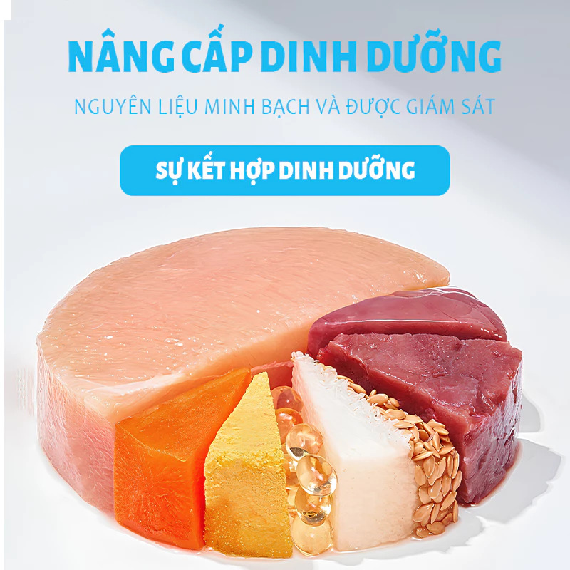 - MR.VET T1 còn nổi bật với 3 loại topping thịt đông khô gồm gà, gan gà và lòng đỏ trứng, mang lại hương vị thơm ngon và hấp dẫn.