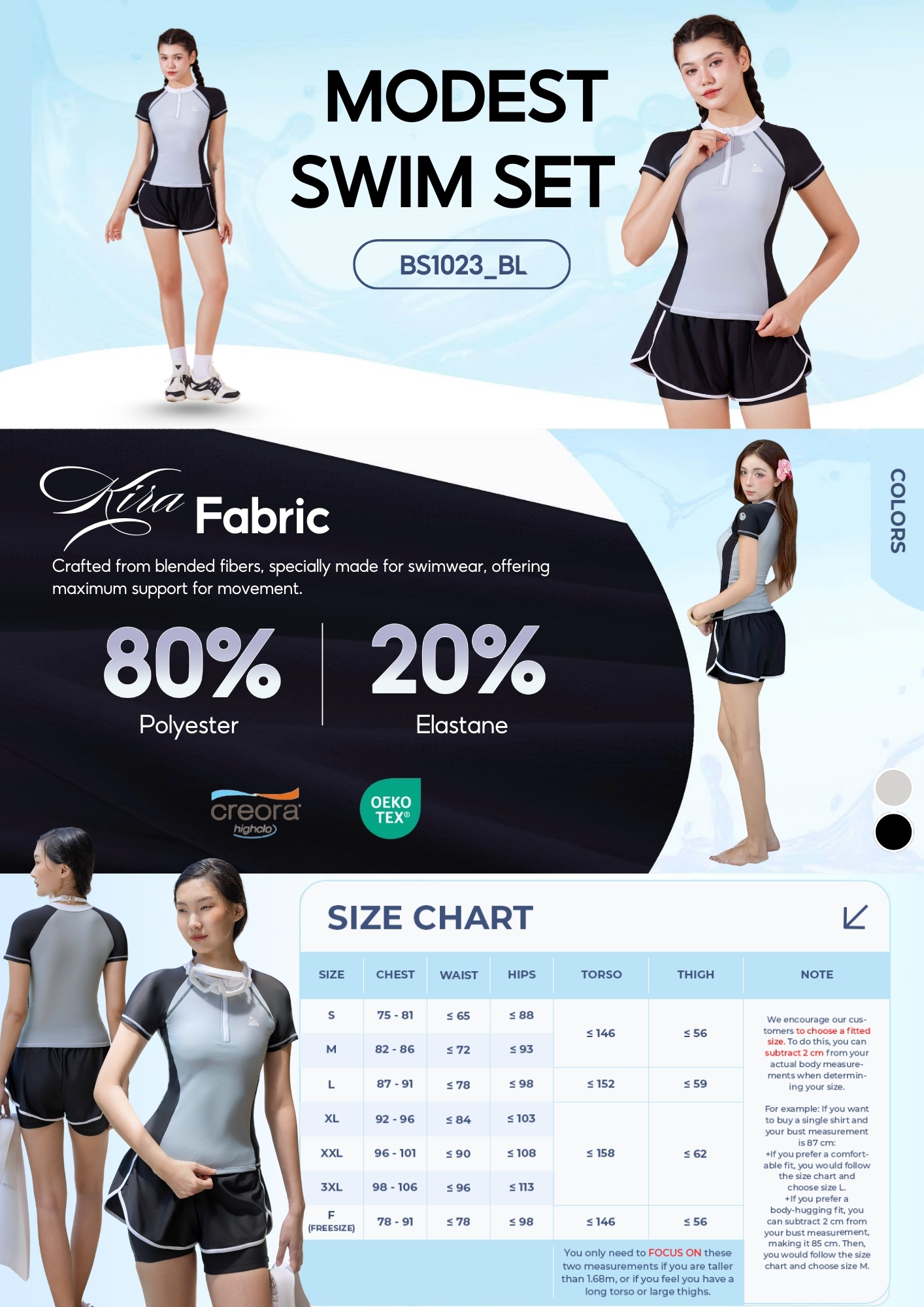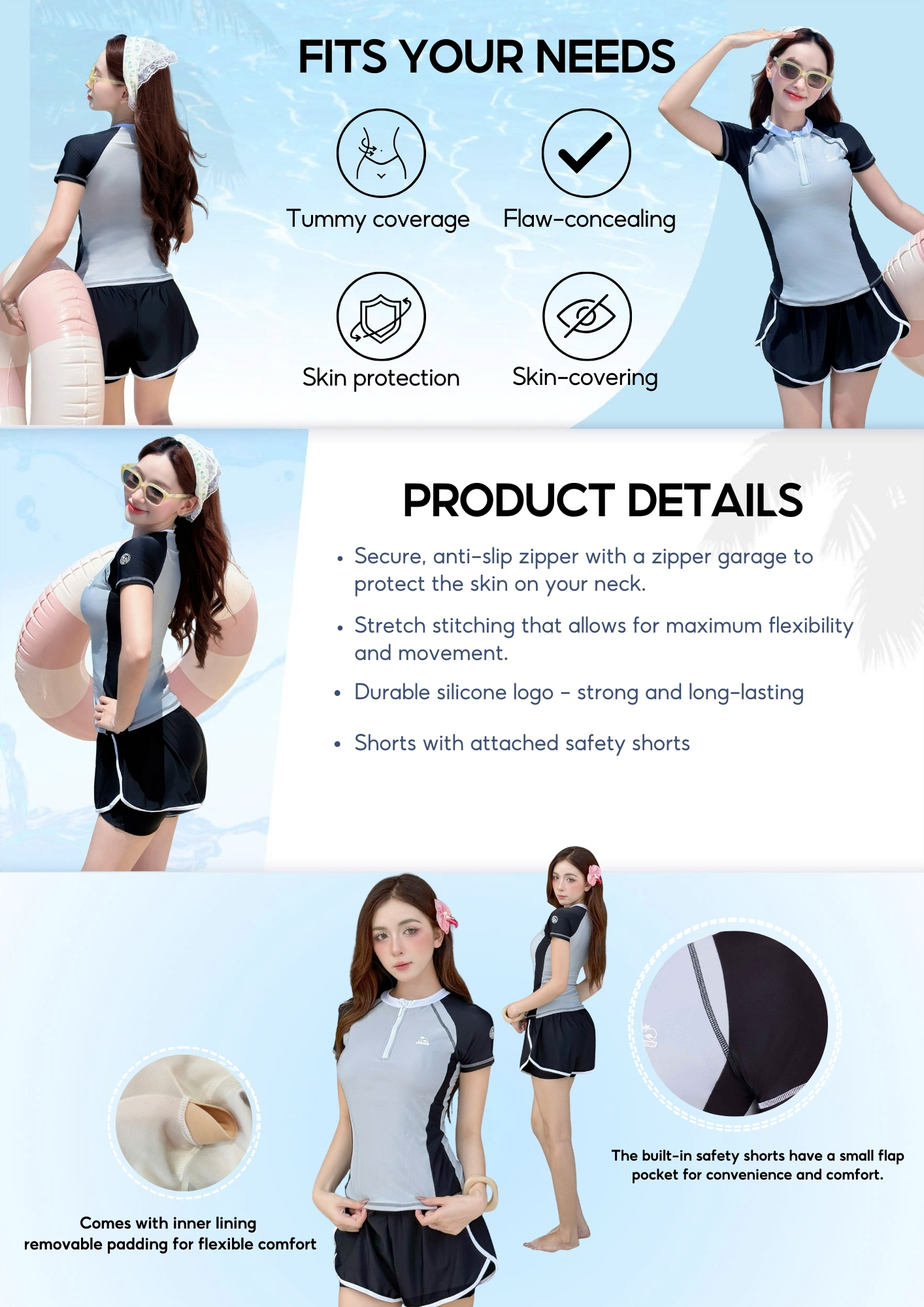 THÔNG TIN SẢN PHẨM: Bộ đồ bơi Nữ BIKINI PASSPORT kiểu hai mảnh short tay ngắn - Đen Xám - BS1023_BL