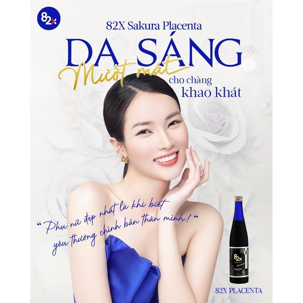 - Bước vào ngưỡng tuổi 40, nỗi lo “xập xệ” bắt đầu giày vò tâm trí khi phái nữ liên tiếp phải đối mặt với những vấn đề nghiêm trọng: Làn da nhăn nheo, chùng nhão kèm theo tình trạng sạm nám, tàn nhang, nội tiết tố thay đổi,... - Các giải pháp chăm sóc, bảo vệ da từ bên ngoài chỉ có tác dụng 30%, 70% phụ thuộc vào việc bổ sung cùng lúc Placenta và Collagen giúp tái tạo thanh xuân, nuôi dưỡng da tươi trẻ từ sâu bên trong.- Nước uống làm đẹp da Nhật Bản 82X Sakura Placenta hội tụ đầy đủ tinh chất làm đẹp da đỉnh cao gồm Placenta (với hàm lượng lên đến 450.000mg thuộc top cao nhất thị trường), Collagen peptide, công thức độc quyền 82 thực vật lên men, tinh chất hoa Anh đào, cam Nhật Bản, vitamin E, B, D... phát huy tác dụng: