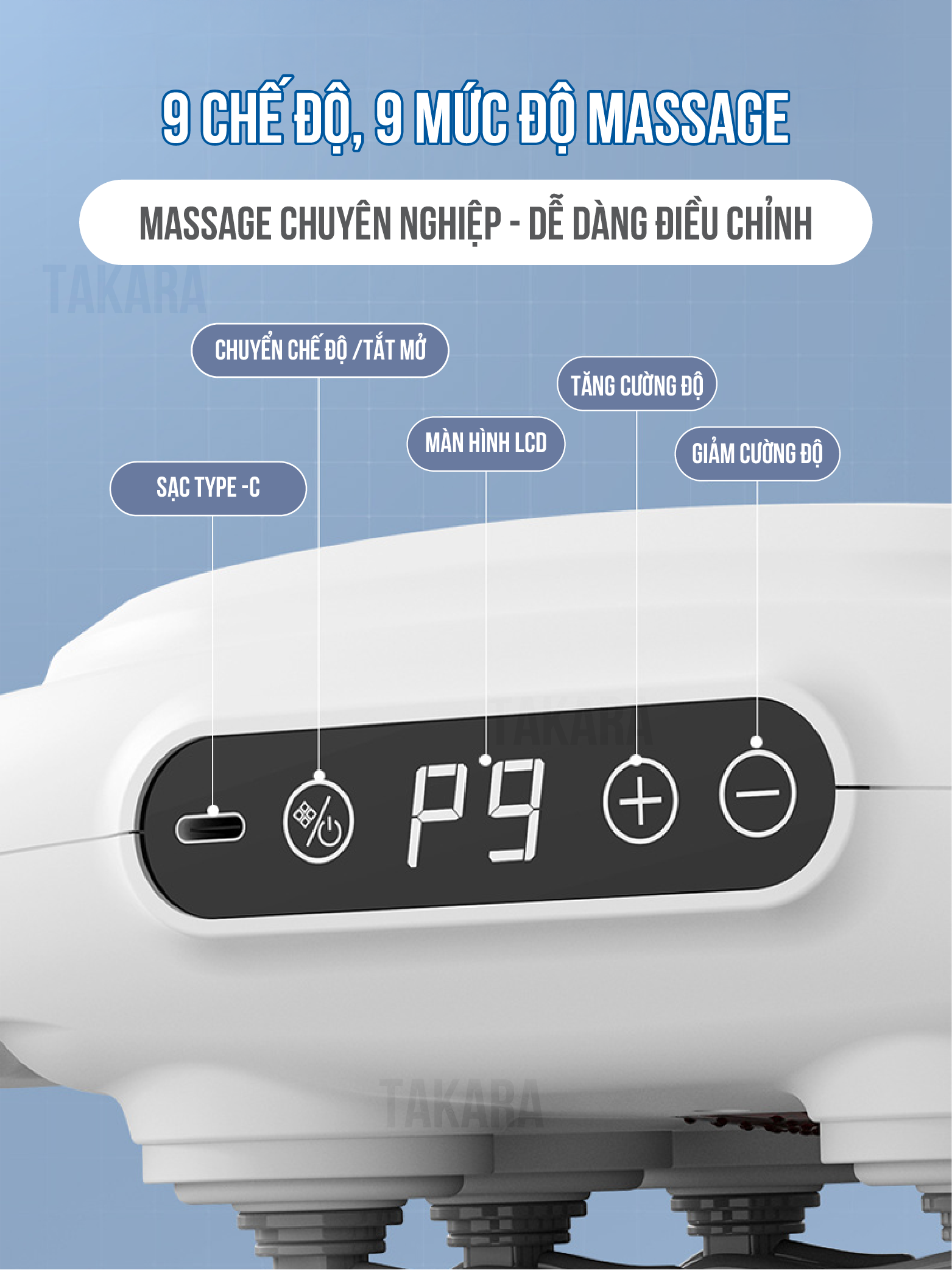 - Máy có 9 chế độ với 9 kiểu rung thích hợp theo cơ của từng bộ phận khác nhau.