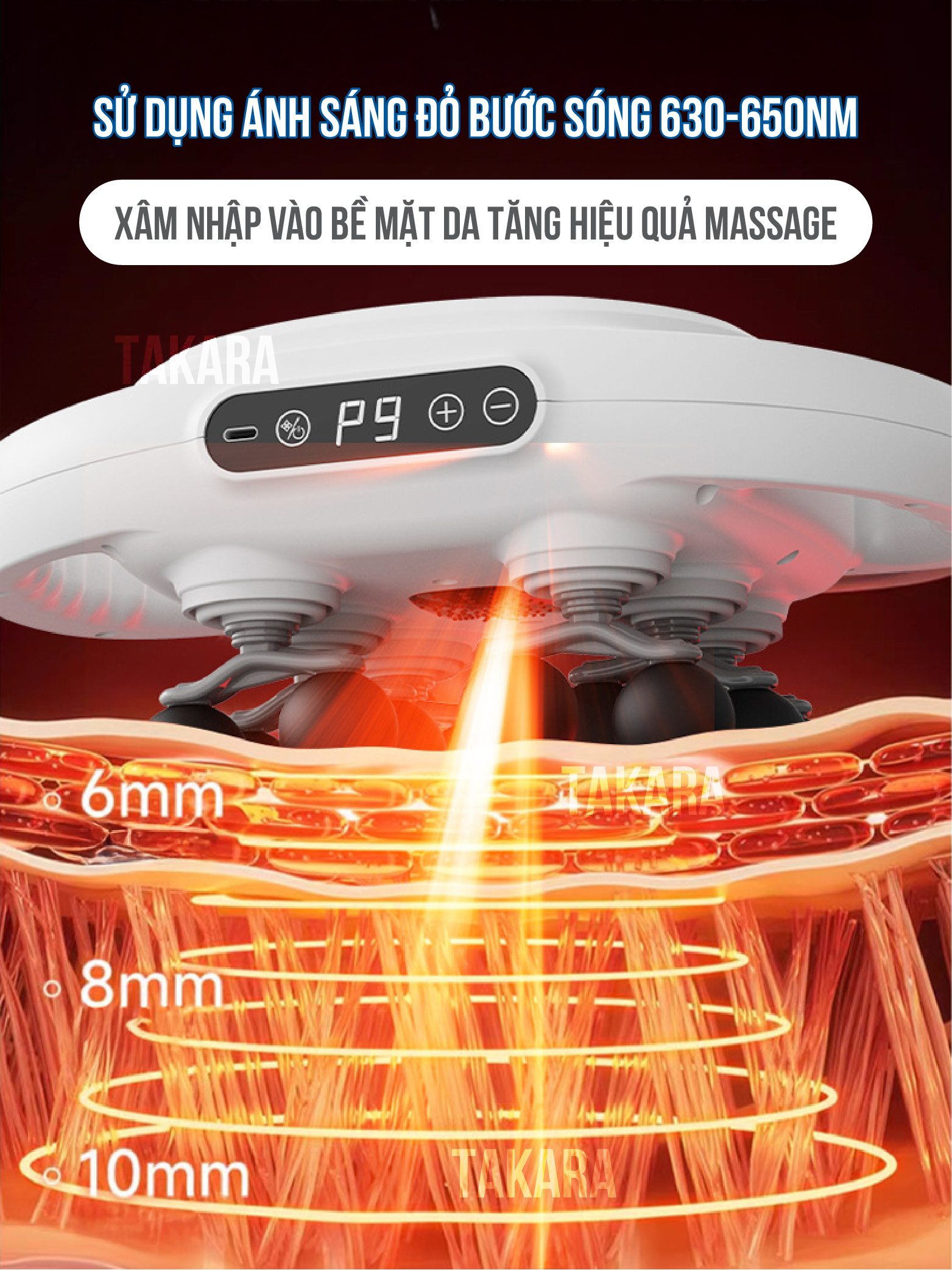 - Sử dụng ánh sáng đỏ có bước sóng 630-650NM để thẩm thấu vào da tăng cường hiệu quả massage