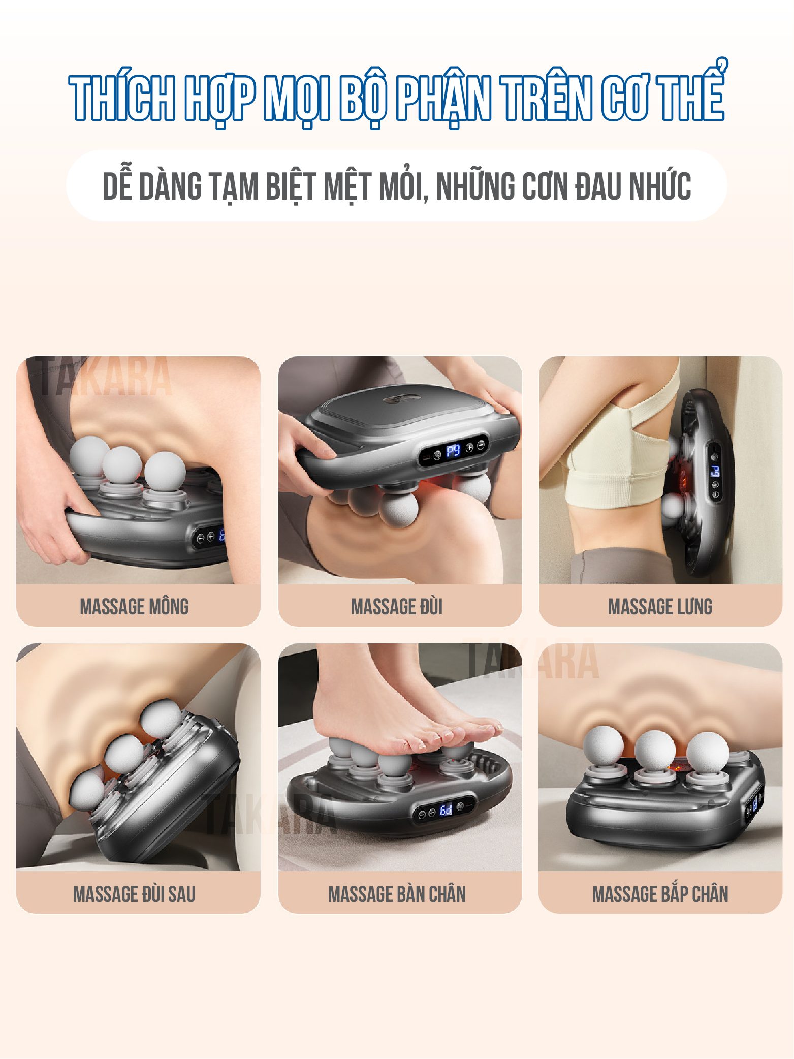 - Có thể massage một vùng rộng và thư giãn các cơ có diện tích khoảng 22.300 mm2. Phù hợp với các nhóm cơ lớn hư cơ lưng, cổ, vai.