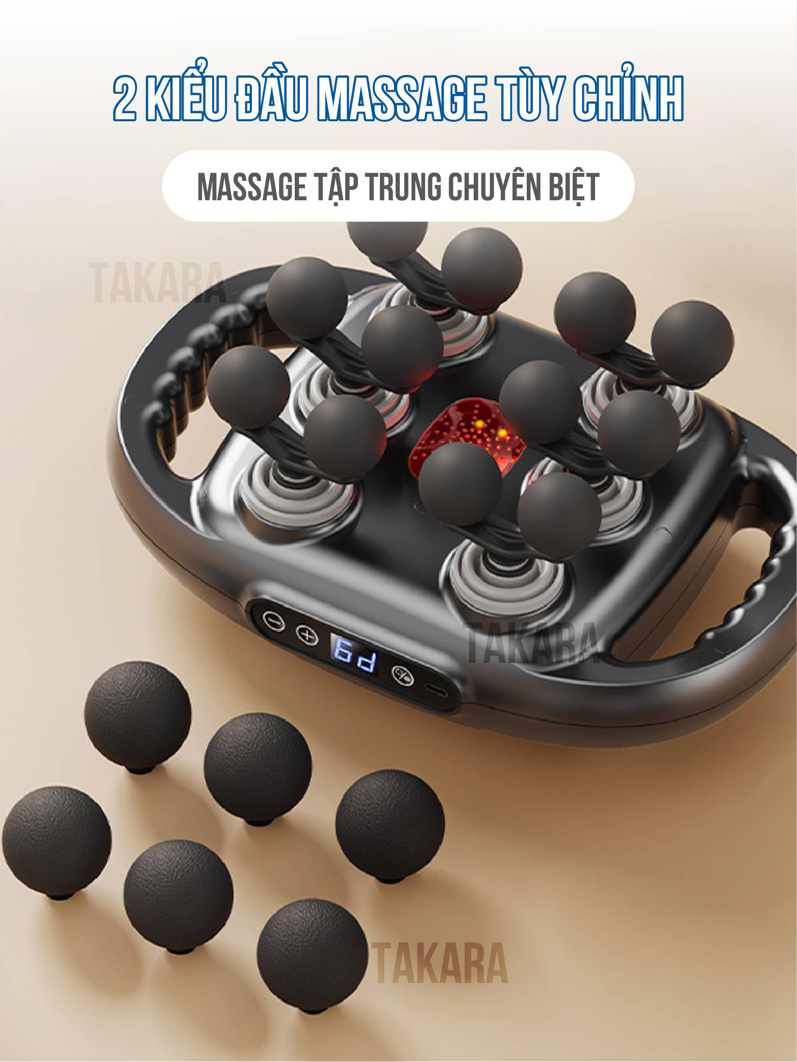 - YMK60 6 đầu: Có 6 đầu massage, 9 chế độ, 9 cường độ, có đèn ánh sáng đỏ